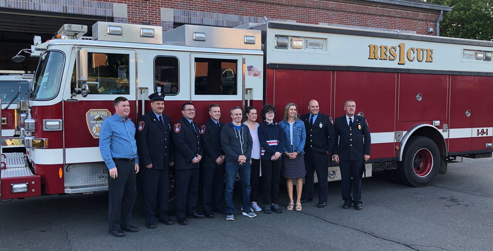 The bystanders and firefighters were recognized at an event at The Guilford Fire Department recognizing them for their efforts to save this young mans life.